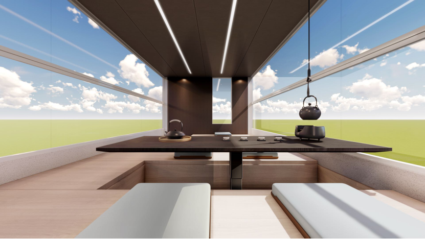 通过国内首创的升降电梯直达二层,瞬间步入崭新的自然体验空间。上汽大通MAXUS 生活家V90别墅版可通过一键顶拓展,形成面积达12.4平米的游艇飞桥式二层空间。二层自带皮质地板+电动升降实木茶台组合,既可作为禅意茶室、书房,也可成为健身房、会客厅,场景多元而实用。同时,上汽大通MAXUS 生活家V90别墅版的二层实现了“空中阳光房+开放露台”的空间融合,阳光房前后玻璃门均采用“庭院式入户门”设计,玻璃门向上滑动开启,完全打开后更可隐藏到车顶,置身于空中阳光房与开放露台形成的一体化自然空间,或沐浴阳光椰风,或倾听山泉虫鸣,全身心融入自然间,享受难得的静谧与悠然。当然,“空中阳光房”也可通过四面电磁玻璃一键切换为隐私空间,在炎炎夏日中可抵抗98%的紫外线,寒冷冬季也可阻挡寒气入侵,四季如春,隐秘而舒畅。