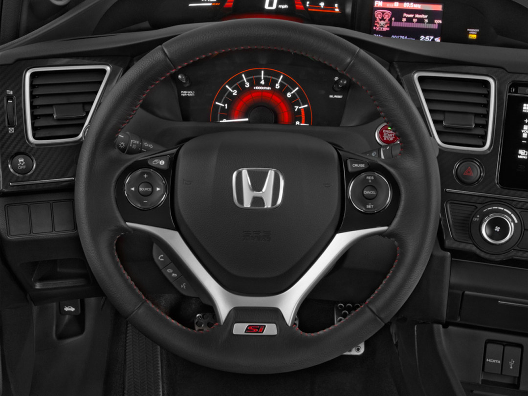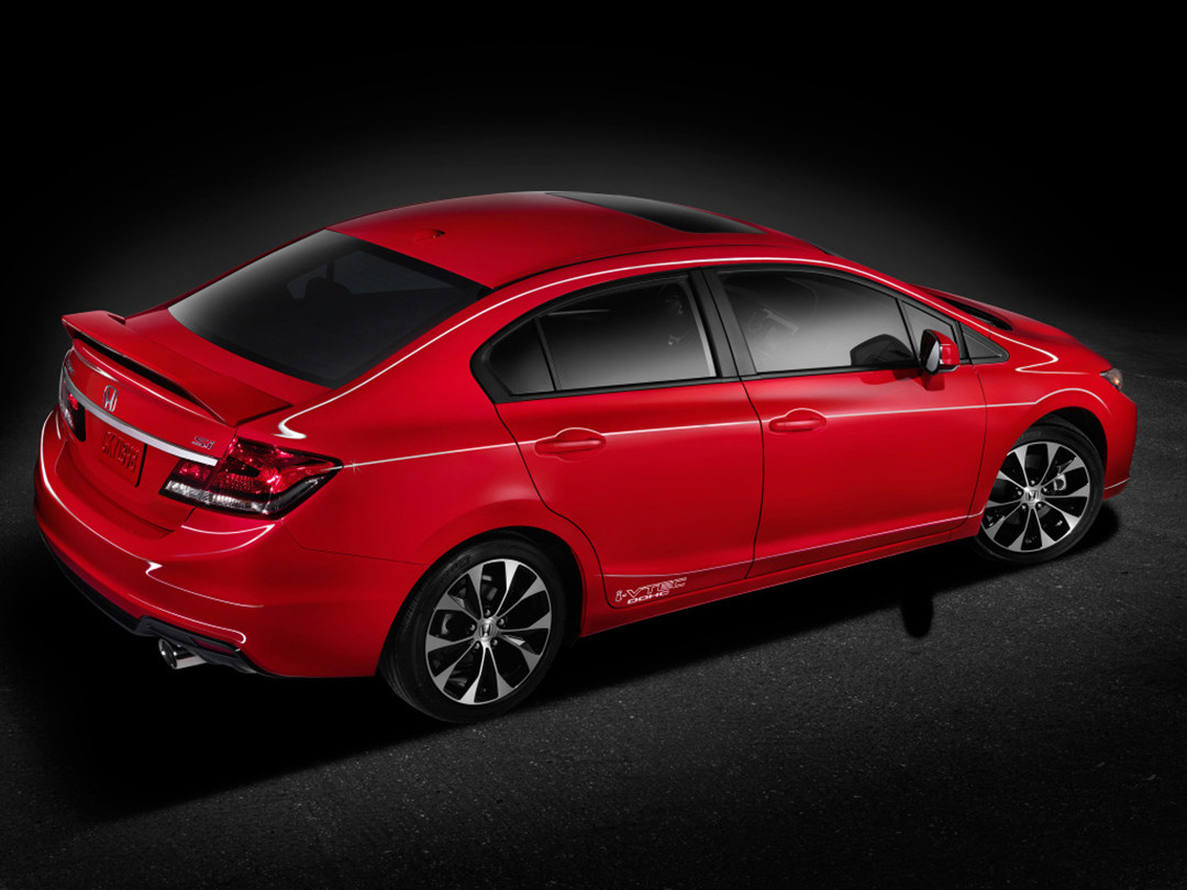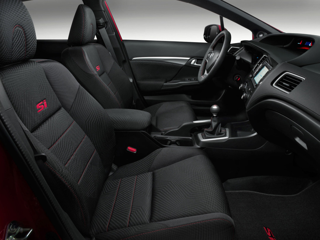 思域Si是东风本田在2014年推出的一款思域运动版车型,其基于第九代中期改款思域打造,在外观上对前包围造型进行了微调,缩短了前包围镀铬饰条的长度,在进气格栅上加入红色“Si”标识,并且加装了大尺寸尾翼,增强外观运动感。