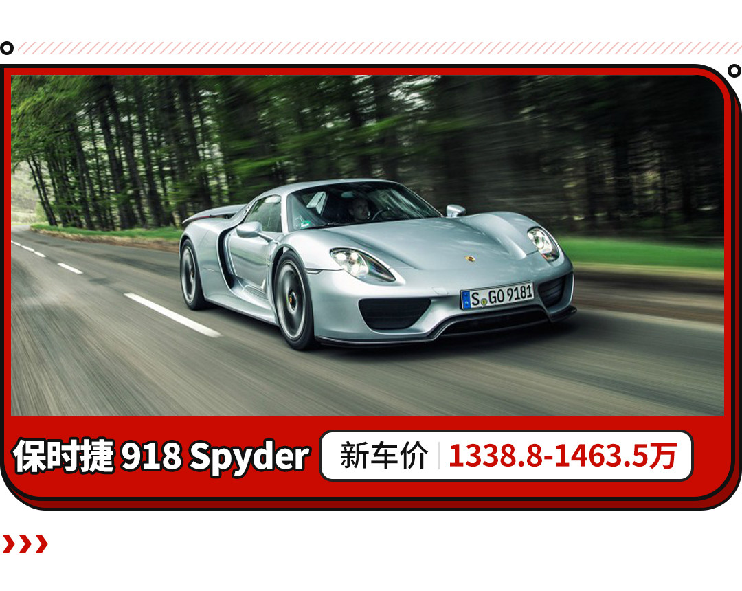 比如说保时捷的918 Spyder,这是保时捷在2013年推出的旗舰超跑,也是继2003年推出Carrera GT之后的又一款同类产品。这款采用中置四驱布局的超跑在2013年至2015年间共生产了918台,国内配额仅100台出头,但最终登记上牌的只有30多台。