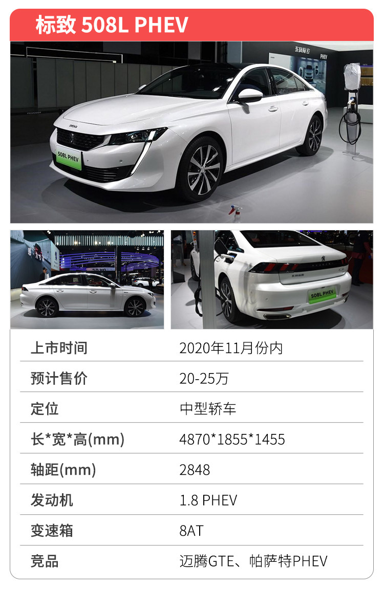 PSA集团在华表现平平,需要更多重磅车型引入,这标致508L PHEV就是“救火之作”之一。外观内饰基本与燃油版一致,依然符合如今年轻人的审美,还带有一点商务气息。最核心的变化在于动力系统,采用了1.8T PHEV混动系统,比起雪铁龙天逸PHEV上的排量更大,电动机最大功率则是109马力,有望带来超300马力的综合最大功率,成为20万级最快的中型车。不过它却是本月中最可能跳票的车型,它在2019年广州车展就发布,原定于第二季度上市,但在内忧外患之下多次跳票,所以你觉得它能如期上市吗?