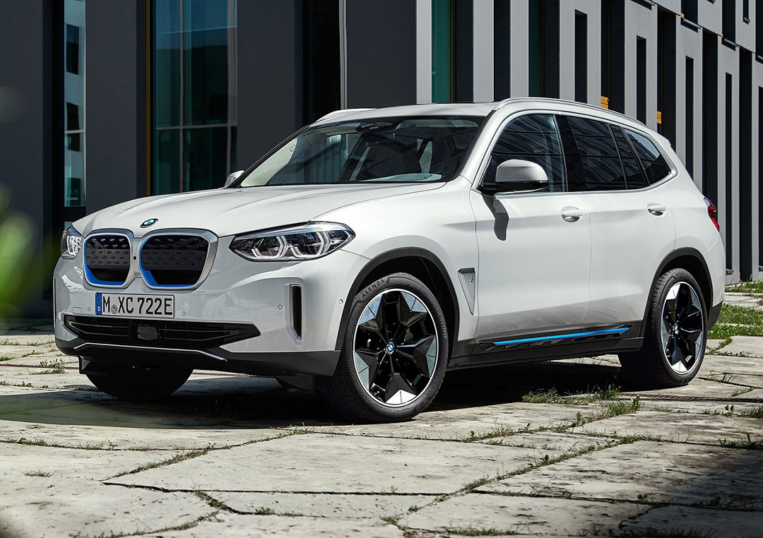 外观上,宝马iX3的造型基于最新款宝马X3打造,宝马品牌经典的双肾造型,因为是纯电车型,所以与X3不同的是iX3勾勒出了蓝色的轮廓,虽然没有像其他纯电车型一样做成封闭式格栅,宝马iX3采用了隐藏式半封闭结构,这样的设计能够有效降低风阻。而宝马iX3与燃油版X3最大的不同之处,在于下方包围方式,更加突显新能源车型的定位。宝马iX3在车侧下方和车尾下方两侧,分别加入蓝色饰板,让人很容易识别其新能源车的身份,而快充口则布局在车身右后侧。