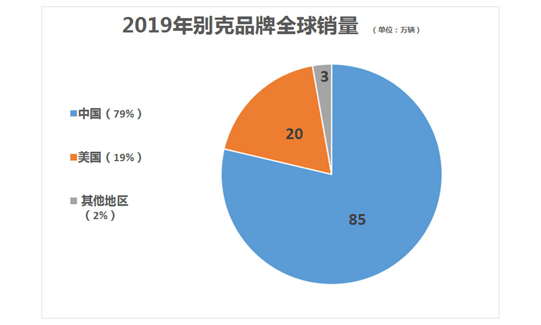 据统计,通用旗下品牌别克在2019年全球销量为108万辆,其中中国市场占了85万辆,占了该品牌全球销量的79%,而品牌在美国本土市场销量仅20万辆,占比不足19%。