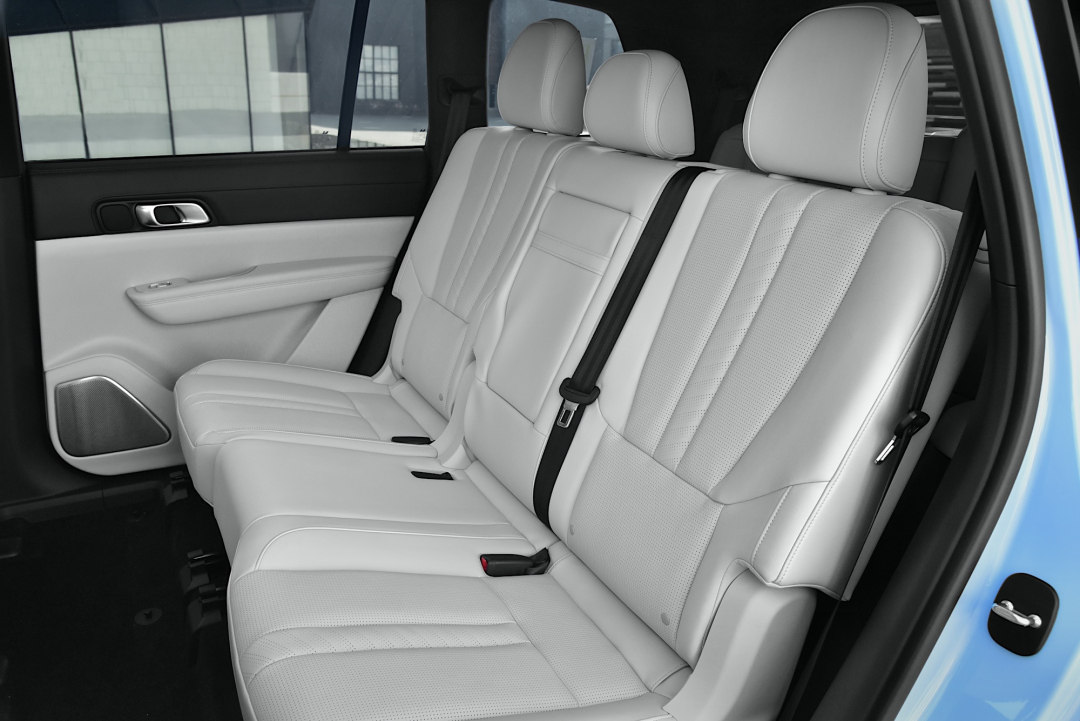 车内支持三区自动空调,二三排都有独立的出风口,二排配备了2个Type A和一个Type C接口,三排也配备了两个Type C接口,能够满足安卓和苹果用户不同充电接口的需求,并且第二排座椅具备加热功能。