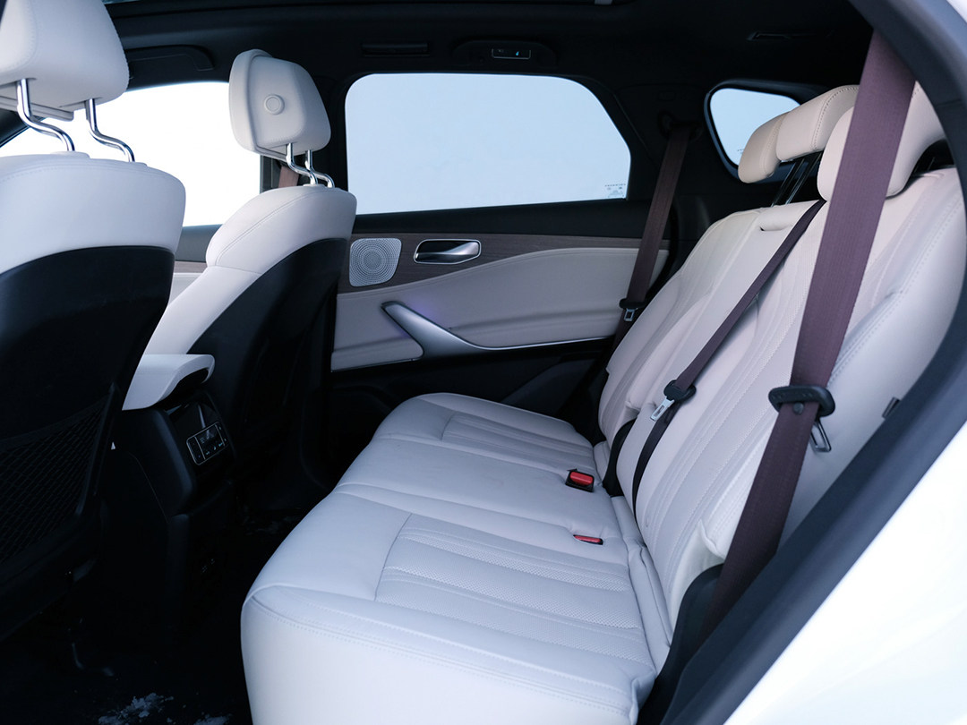 为了方便后排座椅放置儿童安全座椅,蔚来ES8在第二排和第三排各设置了2个ISOFIX,在有二胎的前提下,即使第二三排各安装一个儿童安全座椅,也能轻松各坐一位成年人照顾到小孩。