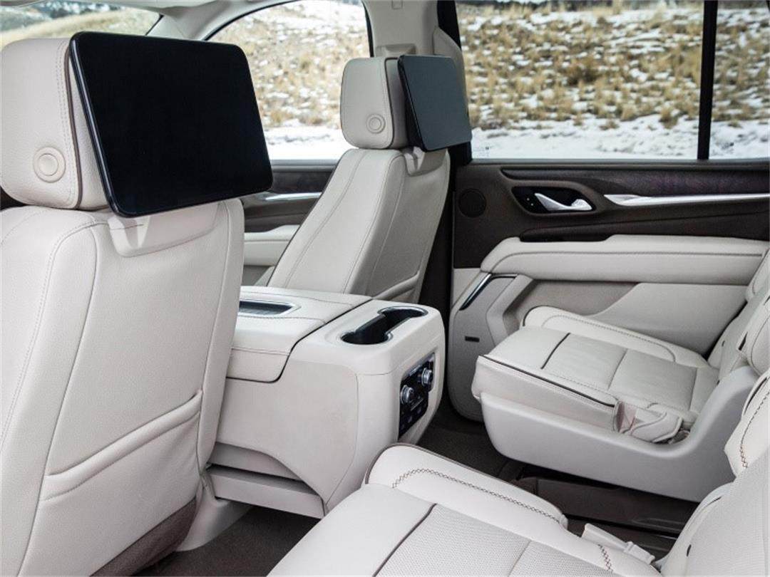 为配合品牌自身的定位,YUKON Denali无论是在外观还是内饰上都采用了大量方正沉稳的设计元素,硕大的进气格栅配合上LED大灯与雾灯组,突显出非常强烈的稳重感。而与外观相呼应的是内饰中木饰板+皮质+缝线的用料组合,同时顶配的Denali车型还配备业界首创的电控移动前排中央扶手功能。