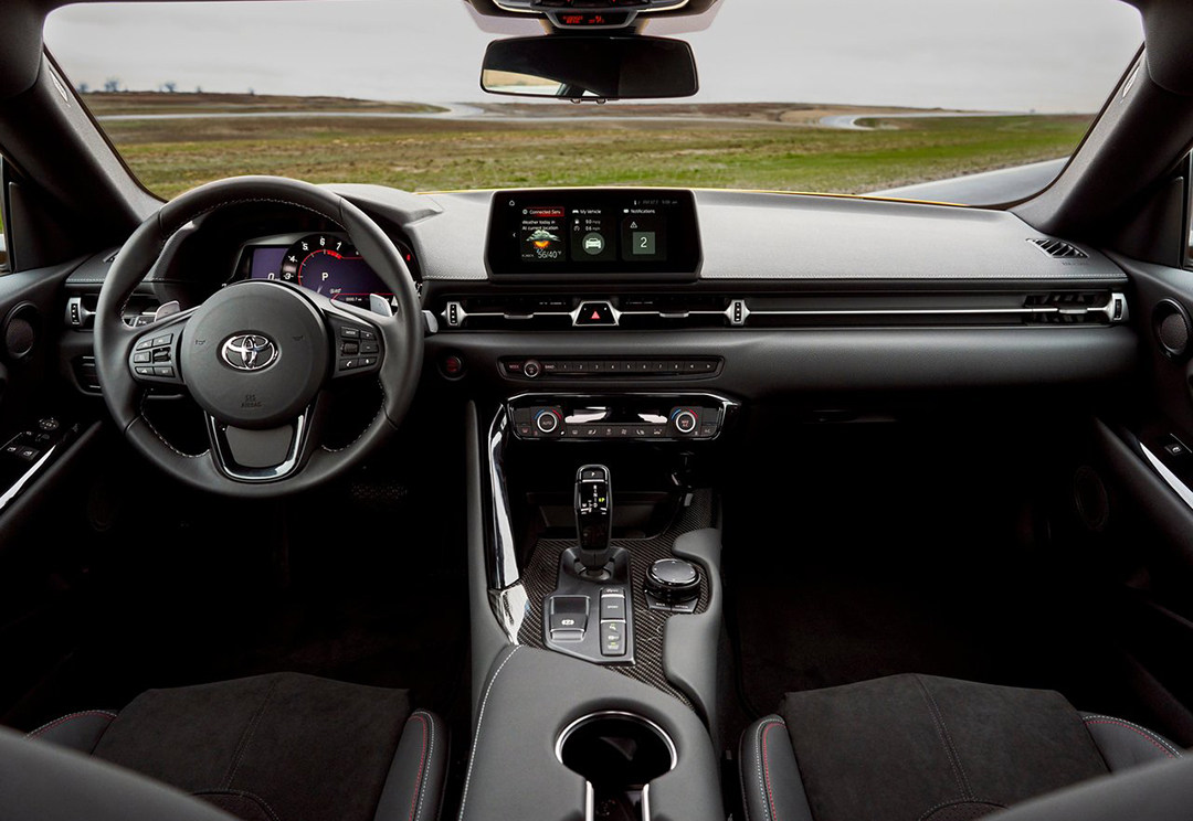 在外观方面,新款Supra继承了概念车FT-1的车身比例,前悬长,再加上夸张的翼子板和短小高翘的尾部,让整车的战斗气息十足,同时下方黑色扰流板也彰显出了性能车的身份。新款Supra的内饰可以算是宝马与丰田的结合体,与宝马同款电子换挡挡杆,透露着浓浓的德味,而与C-HR相似的三幅式方向盘设计,又明明白白告诉我们这是一台丰田车。除了车内大量与宝马共享的零部件以外,新款Supra所搭载的车机系统也正是宝马的i-Drive7.0系统,支持多重手势控制、智能互联功能以及自然语音系统。