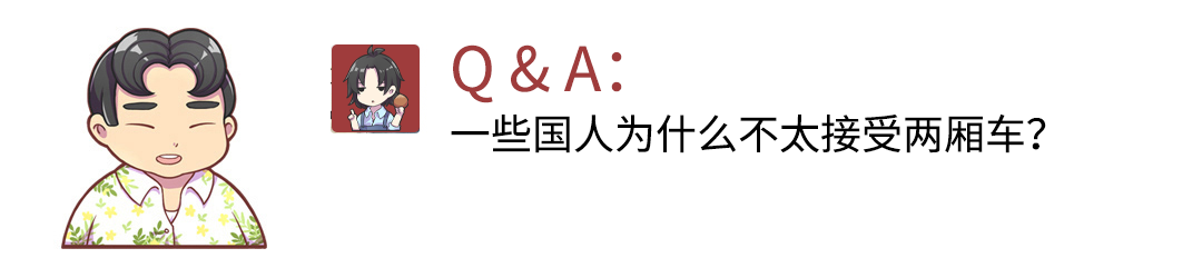 除了价格方面,就是传统观念上,用车最早接触的是三厢车,先入为主观念在作祟,而且两厢车型不太符合国人的审美观,缺乏大气。同时一些比较高档的车型,也没有两厢设计,就导致三厢车看起来档次感更高,而两厢几乎就是A级车和A0级车的标志,从满足虚荣心的角度来看,两厢车自然不受待见。
