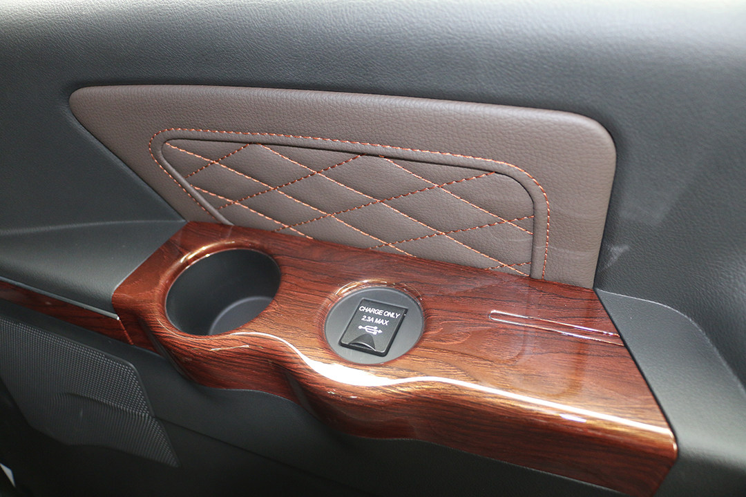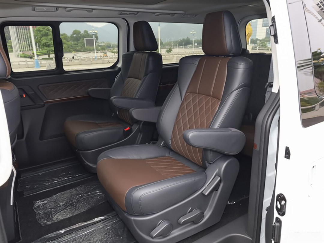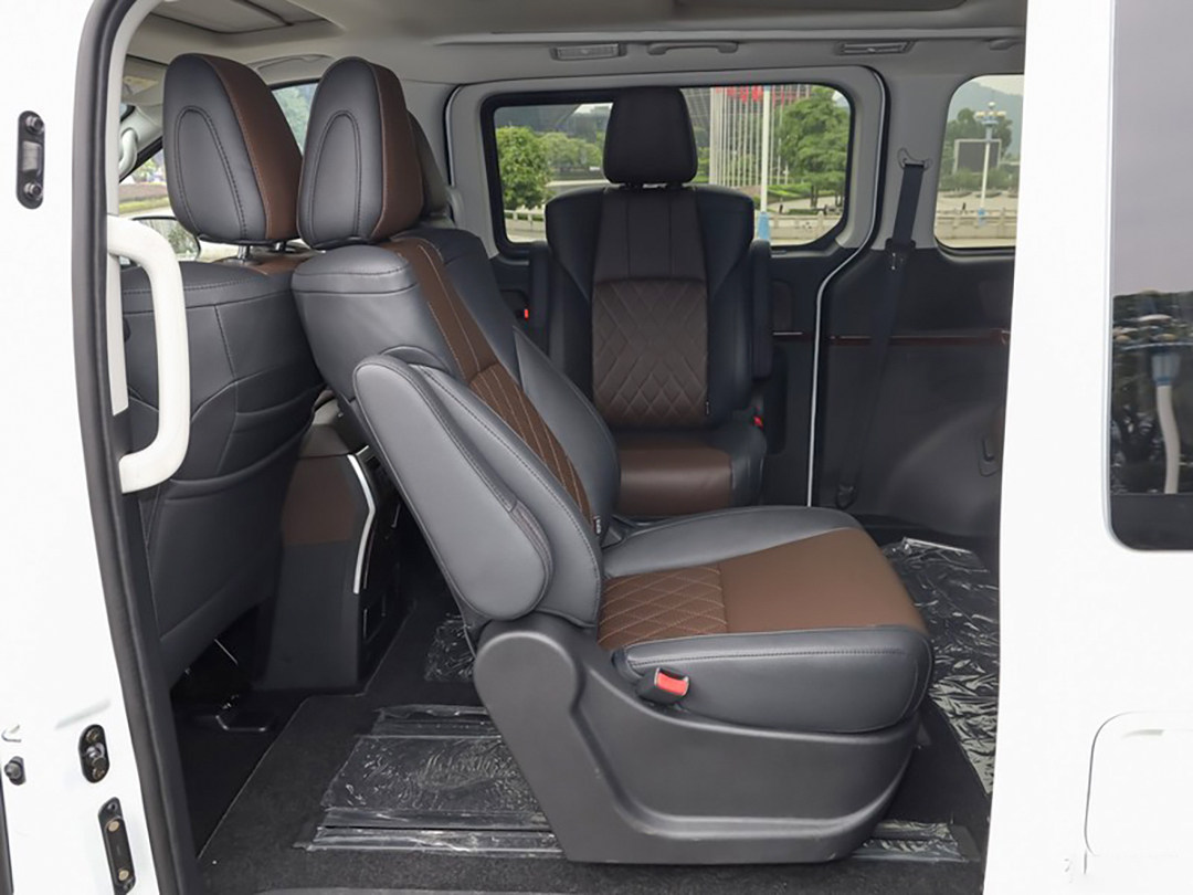 值得一提的是,黑棕撞色设计辅以在门板、中控台等部位大面积使用的软性搪塑、皮质材料和木纹饰板,整个内饰的高级和豪华感都提升了一个档次,与其商务用车的产品定位不谋而合。
