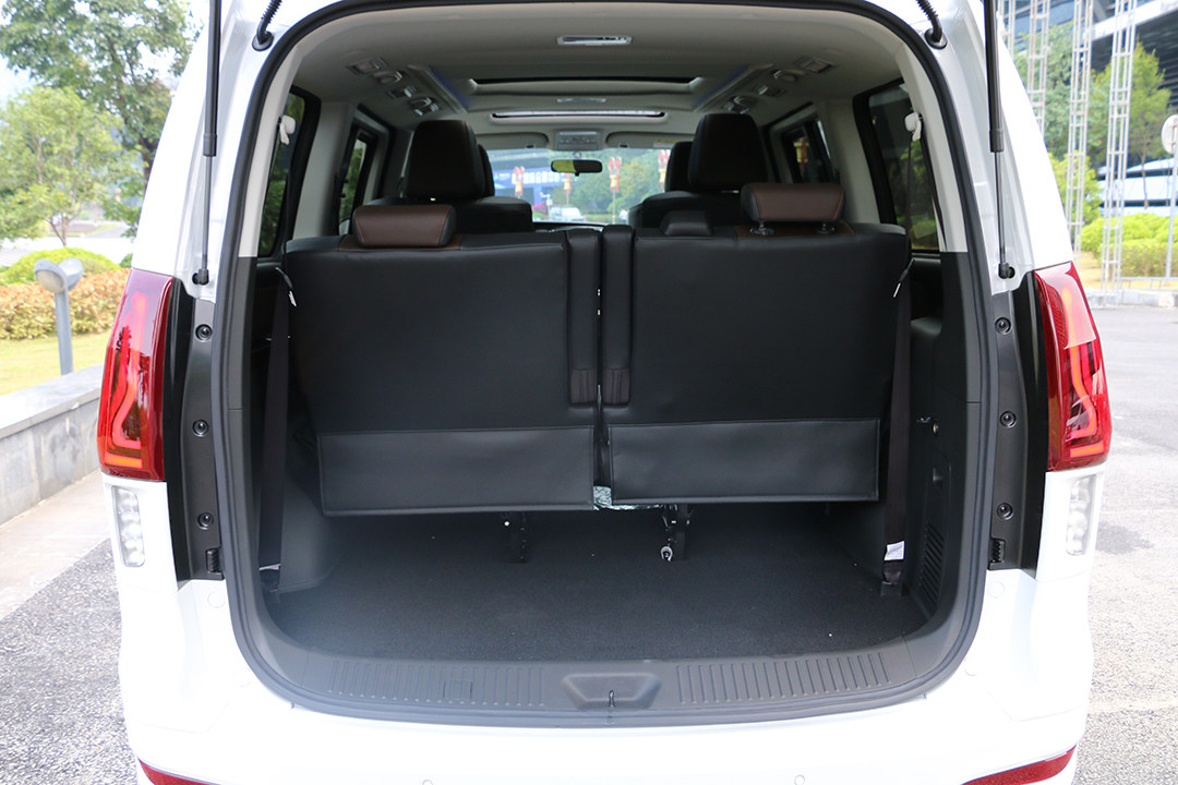 储物空间层面,风行M7的表现也是可圈可点,后备厢在常规模式下就已经能满足日常使用需求。而在180度放倒第三排以后还可以进一步增加容积。