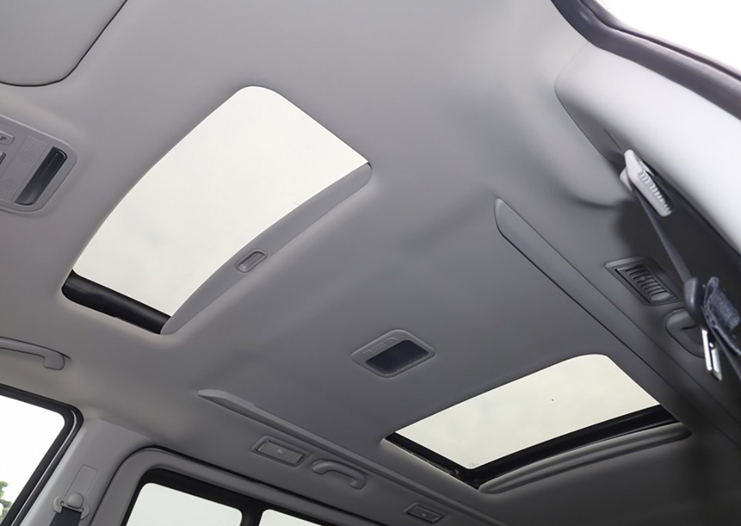 其次,风行M7采用了双天窗设计,并且可以全部开启,对提升车内的采光度、开扬感非常有帮助。而后排顶部两侧氛围灯的加持,则进一步拔高了车内的豪华感。