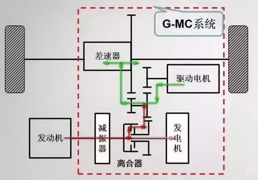 广汽传祺同样也有自己的混合动力系统——G-MC,它有三种动力分配模式,第一种是纯电动模式,此时发动机不工作,电动机驱动车辆。第二种是低速增程模式,发动机工作驱动发电机,产生的电能让电动机驱动车辆,此时发动机不驱动车轮;第三种是高速增程模式,这时候发动机的部分动力和电动机耦合,共同驱动车轮,而发动机多余的动能则通过发电机转换为电能供给电动机。经过认证,广汽传祺的G-MC混动系统的综合效率不低于90%。