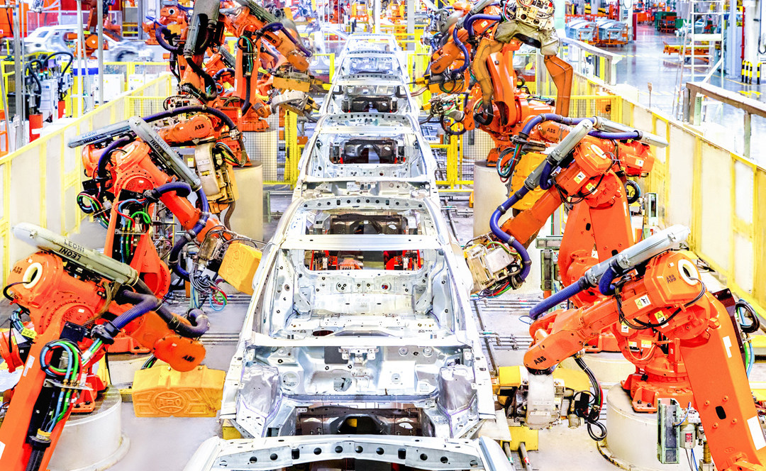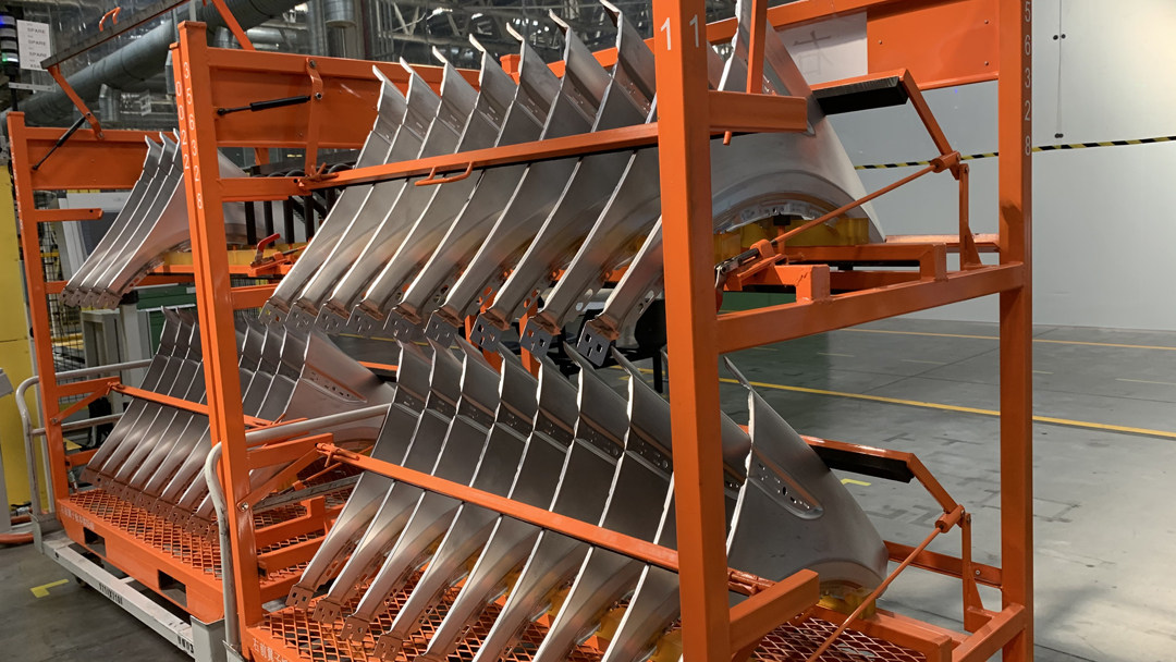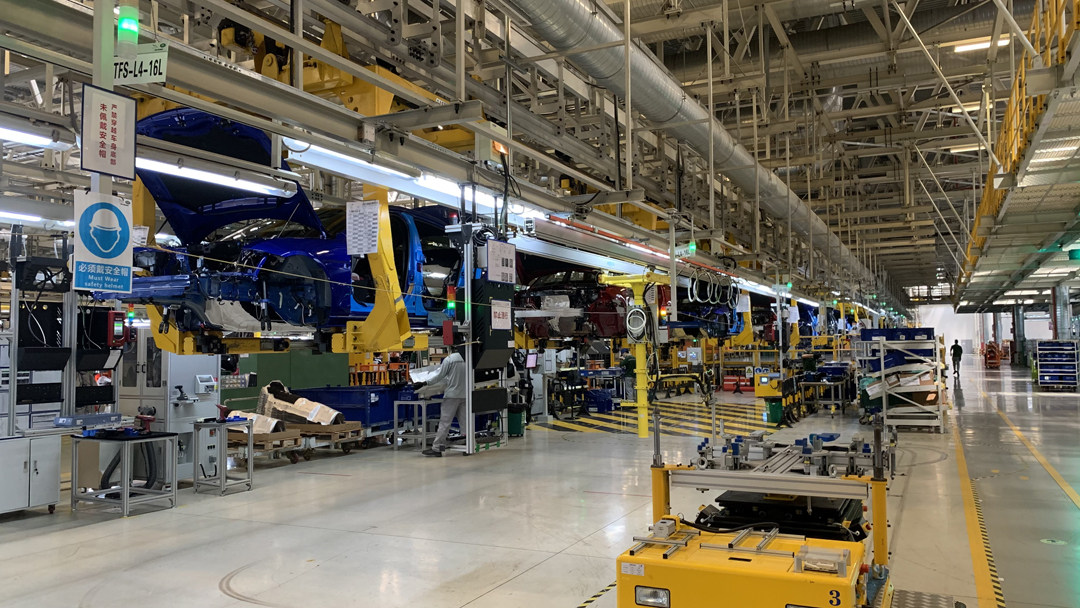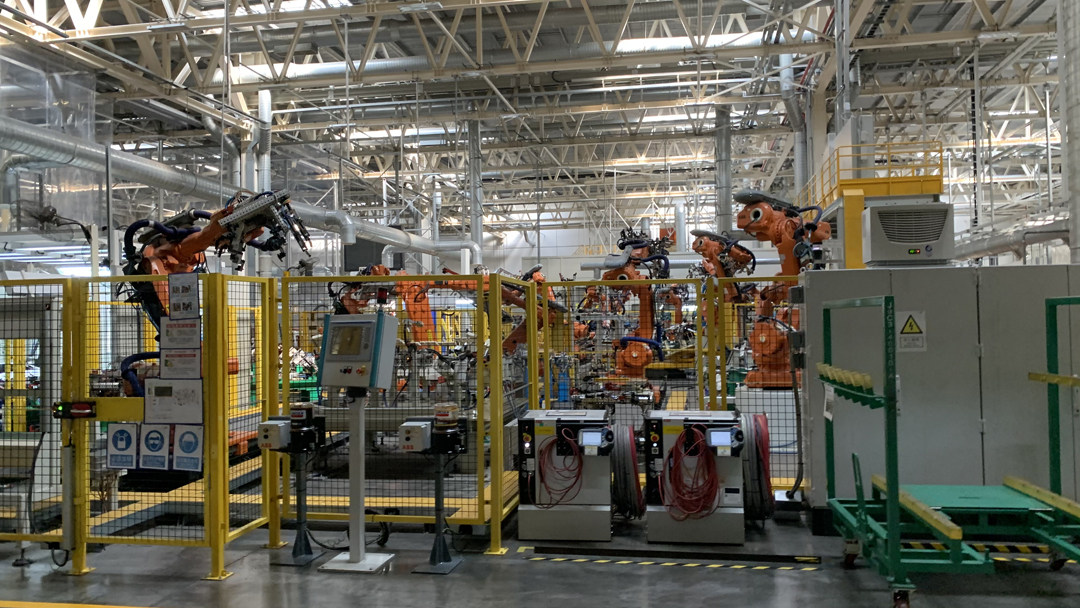 冲压车间冲压完成的组件,就会运输到下一个车间——焊装车间。