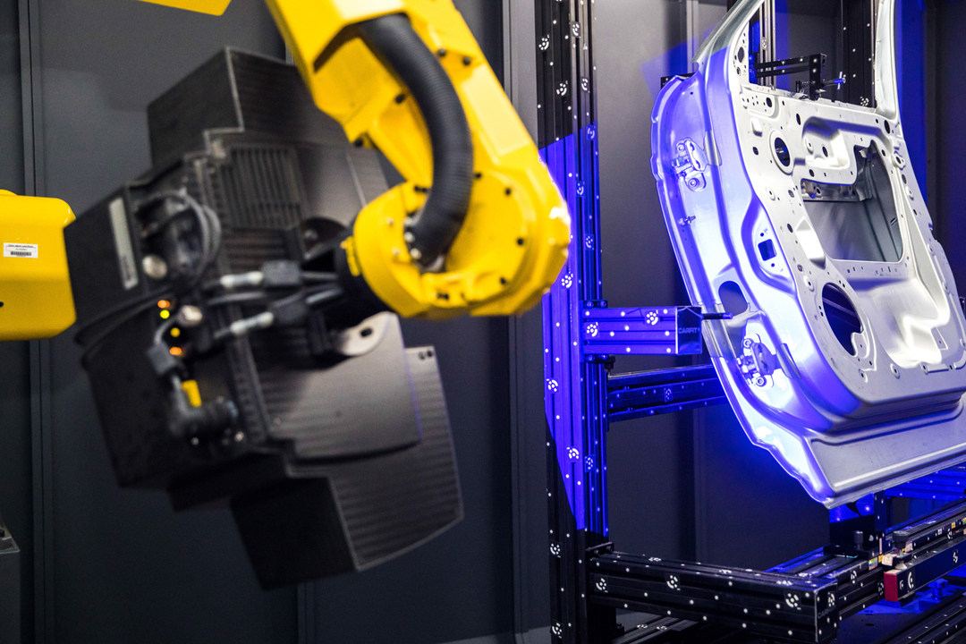 焊接完成后的车身,需要经过Calipri非接触间隙面差测量,对于外观间隙面差匹配实现100%测量,在可视化屏幕显示测量结果,通过颜色区分公差,我们之所以看到豪华品牌的车辆接缝均匀、板件之间均匀对齐,就是因为有这个步骤。