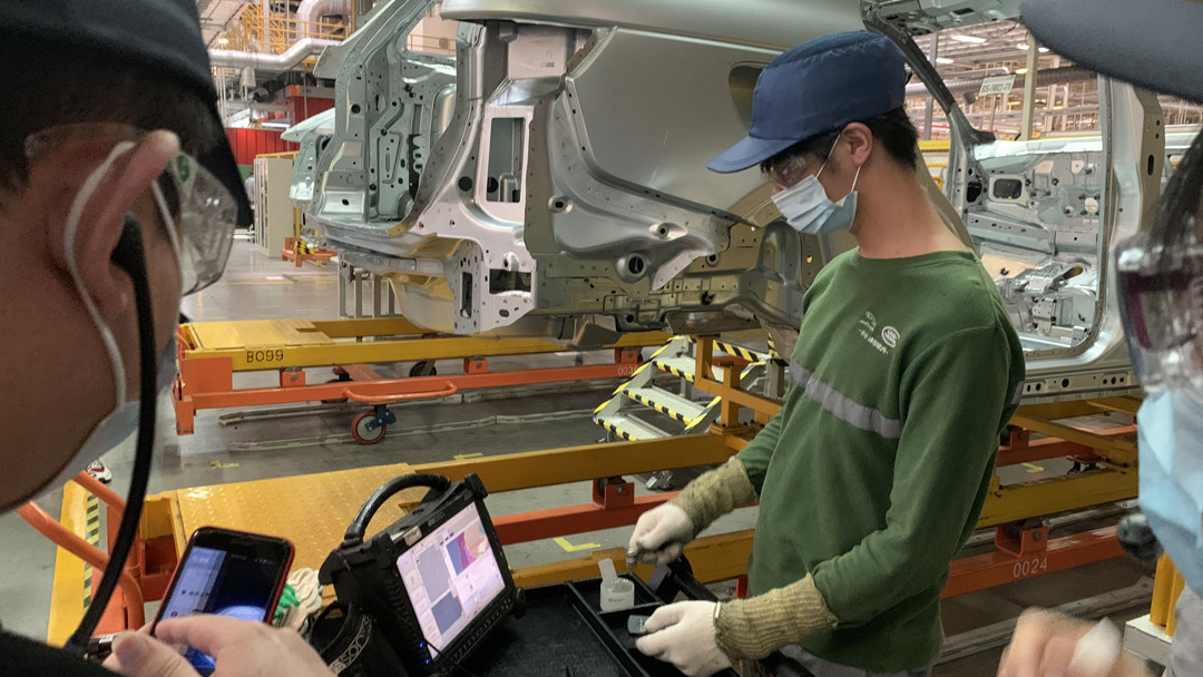 此外,焊装车间每天会对每个车型的1台白车身进行抽检,通过超声波检测的方式对车身4000多个焊点进行检测,保证车辆焊点的精准度、可靠性。