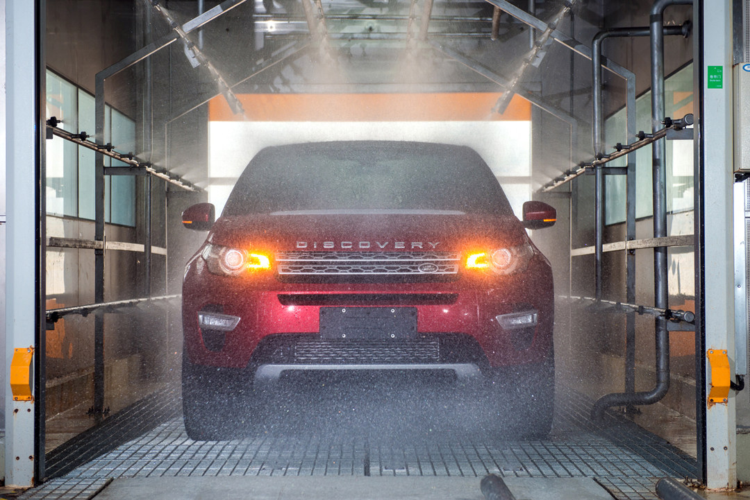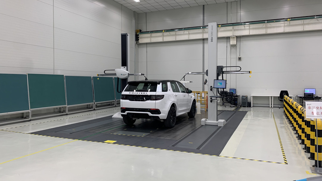 在质检中心处,有20分钟的静态淋雨测试、振动台加环境仓、尺寸评估&标定等。每天每个车型都会抽取一台车进行淋雨测试,与英国工厂的淋雨设备相比,奇瑞捷豹路虎的工厂集成化程度更高,占地更小,且标准更高。