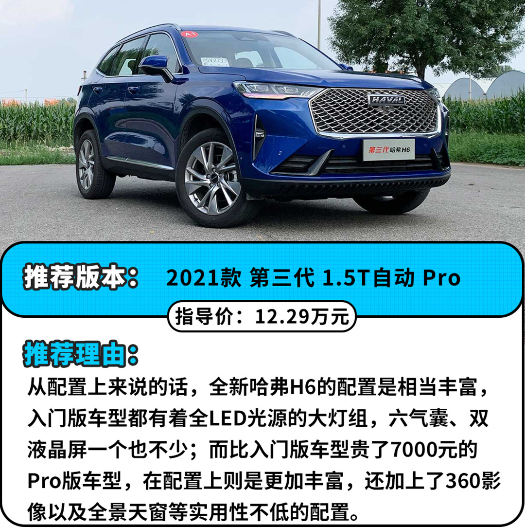 得力于全新哈弗H6丰富的标准配置,即便是次低配的Pro版车型在配置方面就有着很不错的表现,除了上面说到的那些配置之外,像LED雾灯、转向辅助照明、座椅加热以及皮质座椅这些可以极大提升乘坐舒适感的配置也有配置,这种程度的配置已经足够家庭使用,自然最值得推荐了。