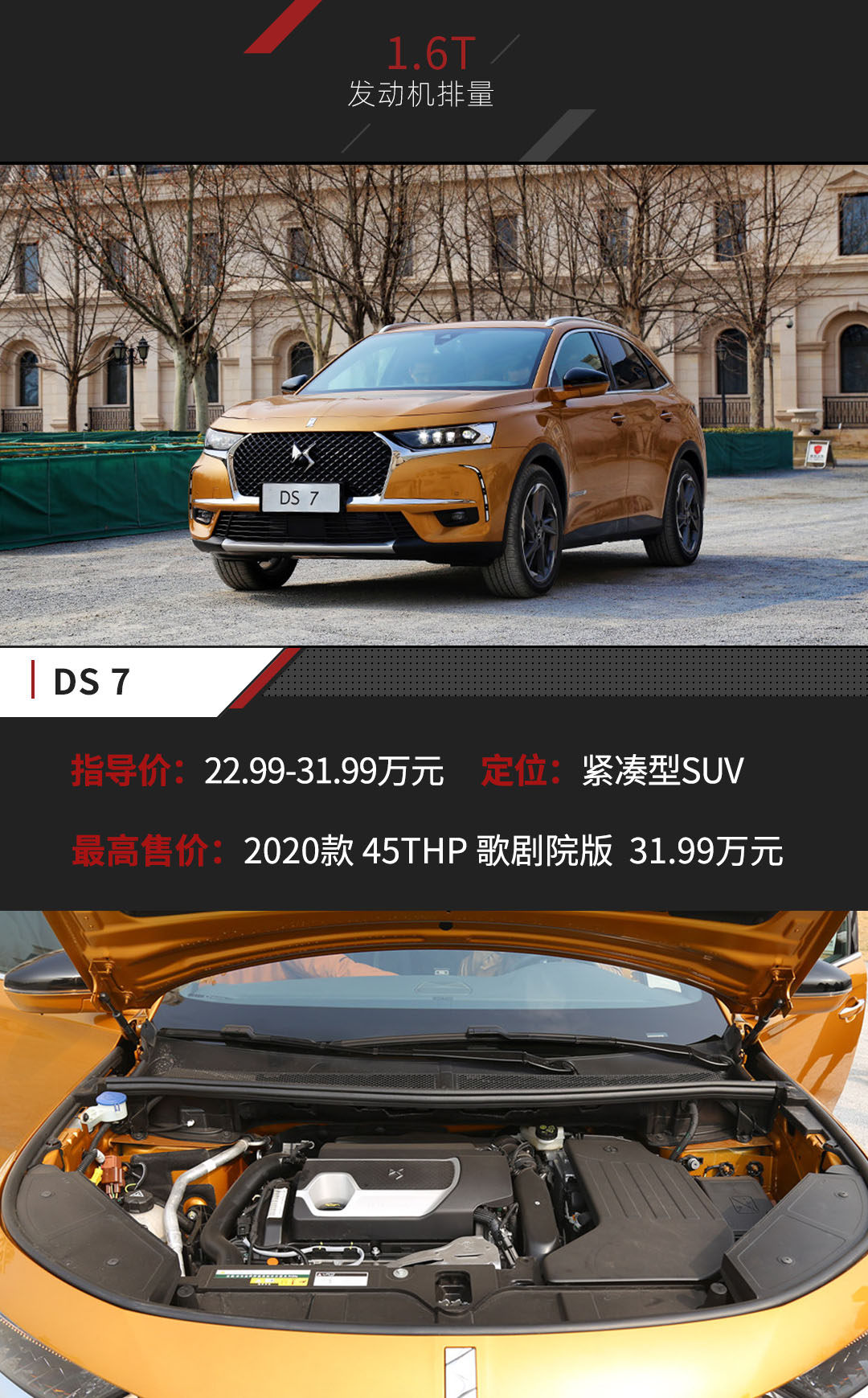 1.6T发动机除了奇瑞和现代用得比较多之外,可能很多人还会想要F1方程式赛车,但是因为F1方程式赛车看得到买不到,所以暂且不谈。而目前国内1.6T发动机价格最贵的,当属来自于法国的豪华品牌DS,其中DS的旗舰SUV车型DS7的售价,最高可以去到接近32万元。