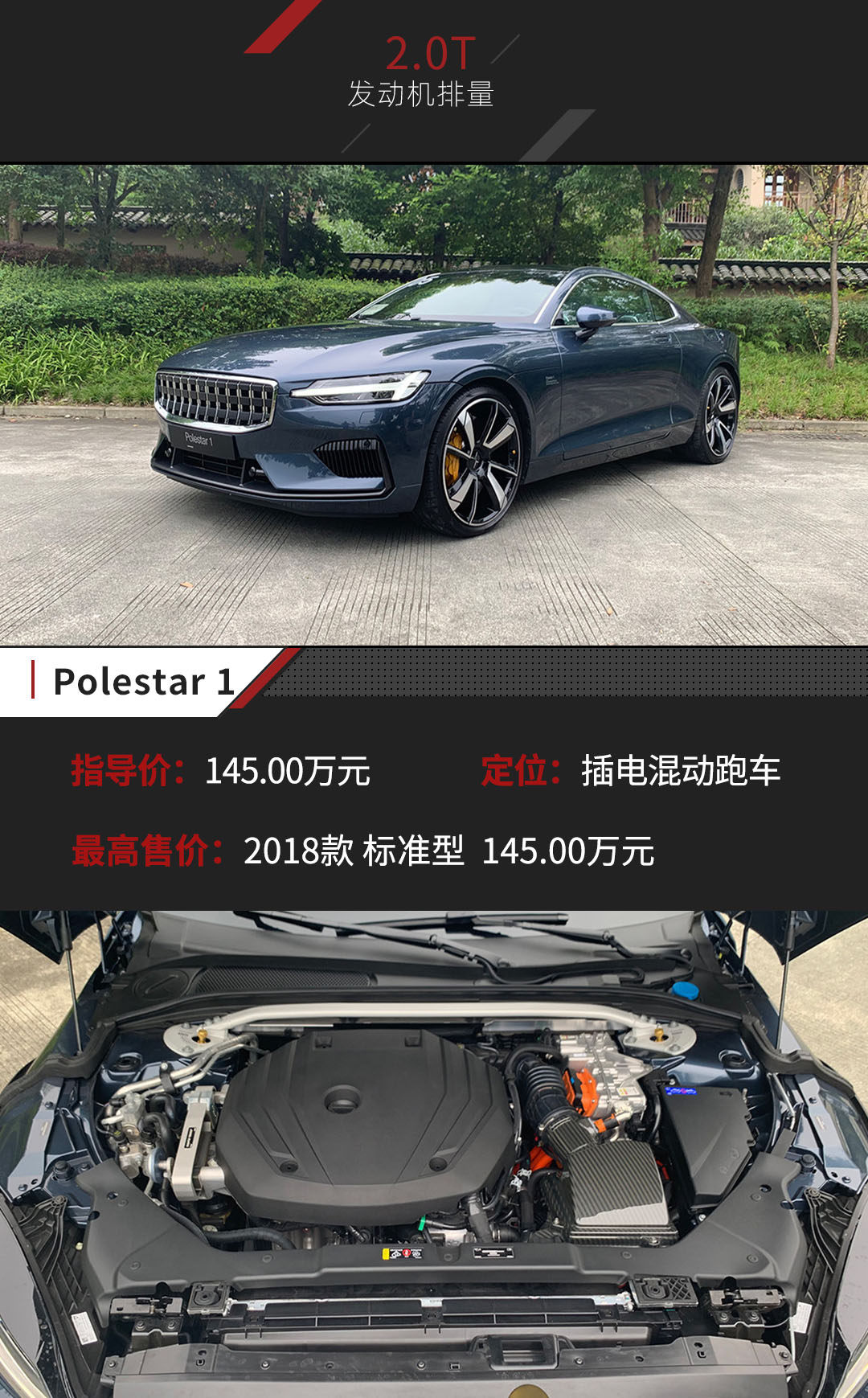 但实际上从指导价来看,奔驰G 350目前还不是最贵的。沃尔沃和吉利共有的高性能电动车品牌Polestar ,旗下的第一款车型Polestar 1,其厂商指导价要去到145.00万元。定位为豪华高性能电驱混合动力GT轿跑的Polestar 1,搭载的是一台2.0L机械涡轮双增压汽油发动机+双电机组成的动力系统,综合最大马力600Ps,峰值扭矩1000N·m,也正是有着这样的动力和定位,才有勇气卖到百万以上。值得一提的是,这也是目前国内生产的车型里售价最高的。