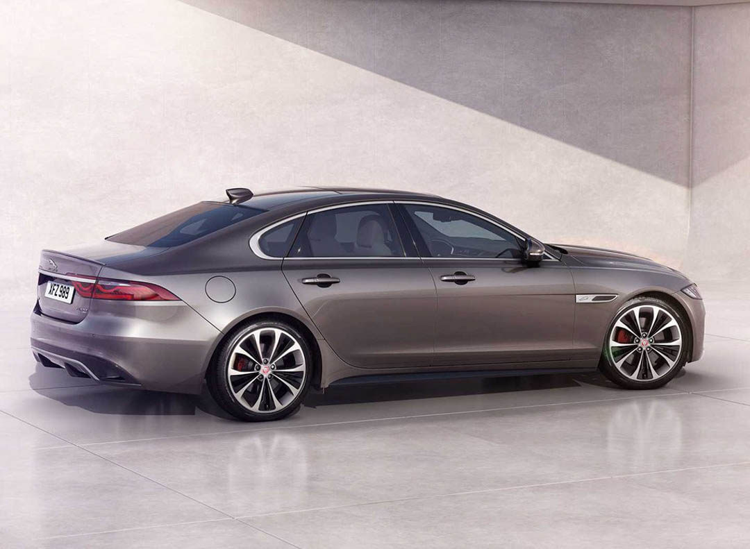 新款的XF并没有对侧面进行明显的修改,而是延续了现款修长且优雅的造型设计,4964mm的车长也很好的衬托出了中大型轿车该有的气势。而该车型在国产后预计会延续加长的处理,车长或将达到5093mm。