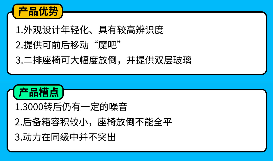 新车在缺点方面并不算特别明显,整体都是有着较高的配置,放在同级中去对比并不逊色,只是作为首款MPV车型还是有部分地方有待加强。