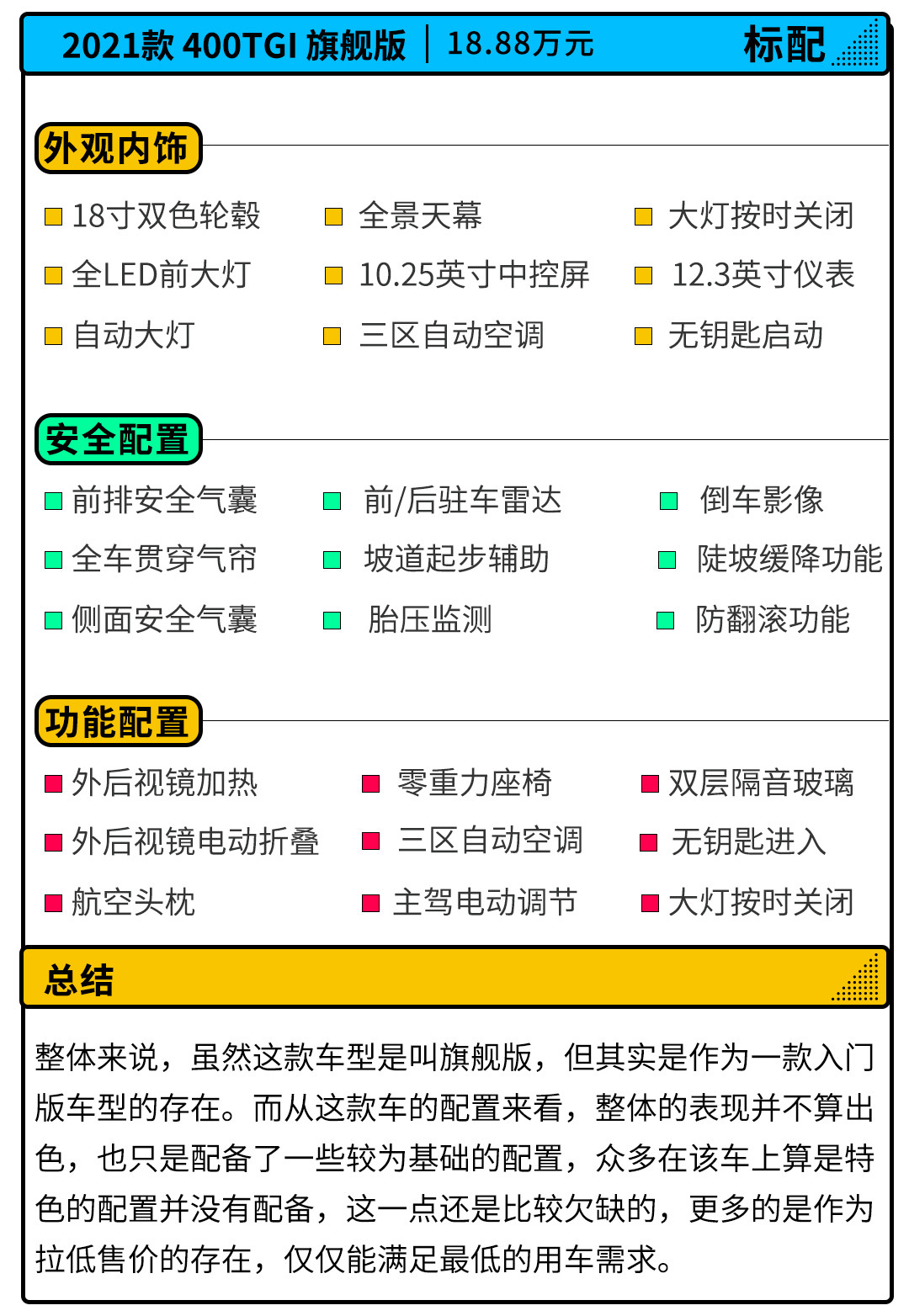 售价方面,新车的价格从18.88~25.38万元,全系均采用2.0T发动机搭配8挡手自一体变速箱的动力组合,3米轴距和1米9宽度的水平放在同级确实不俗,不过在长度和高度上还有待加强。