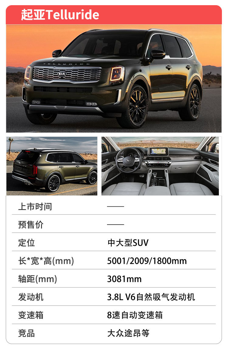 设计来看,整车采用了方正、大气的外观造型,而内饰上则偏向于沉稳实用,可见这款2+2+3布局的7座SUV依然主打家用市场,同时海外版搭载的3.8L V6发动机也是为了满足美国消费者对大排量的需求。不过,起亚暂时没有公布Telluride要入华消息,但其选择在进博会亮相就说明有这个意思。