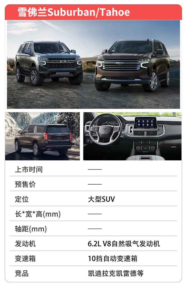雪佛兰Suburban和Tahoe在美国本土有着许多拥趸,而且还属于较为畅销的SUV车型,显然这和当地汽车文化有关,至于国内情况大家都知道,排放标准将是它们的绊脚石。所以,即使新车在进博会上展出,不过未来要引入也将由平行进口商负责,而类似的百万级全尺寸SUV绝对是极小众选择,但也不能完全排除没有市场,毕竟国内有着不少热衷于这类SUV的消费者。