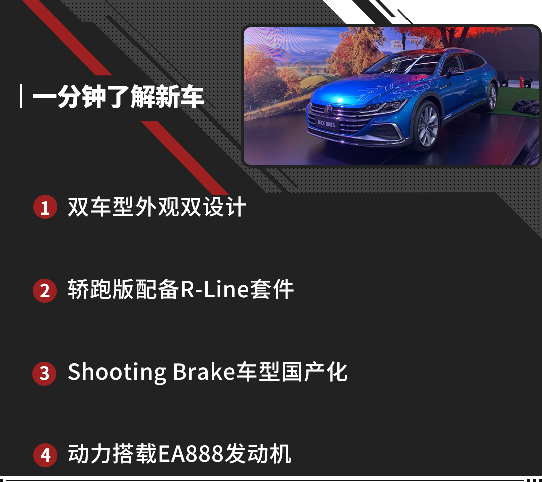 时至今日,大众CC已经发展到第三代车型。此前在8月24日,一汽-大众宣布新款CC正式下线。不同以往,此次新款大众CC除了推出轿跑版本车型之外,还将推出猎装版本车型并国产化。