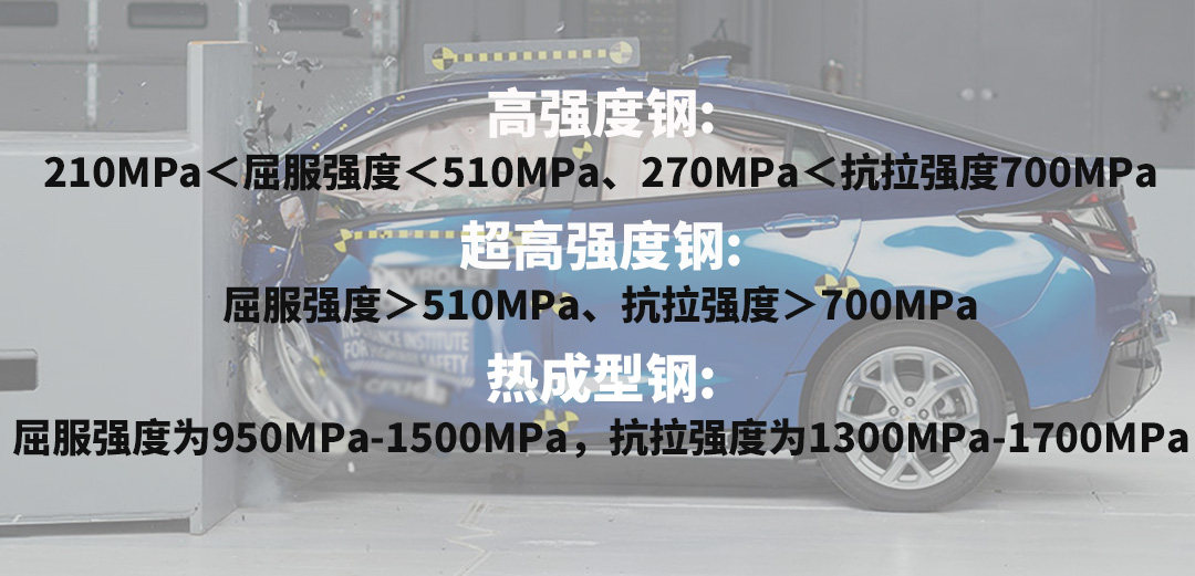 高强度钢、超高强度钢、热成型钢是几种常见的车身材料。材料有两个很重要的值,屈服强度和抗拉强度。简单一点可以理解为这两个数值直接体现材料的坚硬程度。
