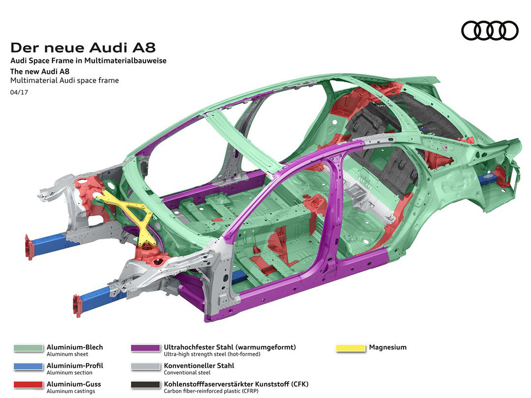 一些高级的车型往往会采用超高强度钢和热成型钢混合使用,看前面的数据也可以知道这些材料的拉伸强度和屈服强度都很高,这也意味着它们的防护能力大。事实上热成型钢的成本要更贵,因为它更加薄,轻量化好,可塑性也更加强。