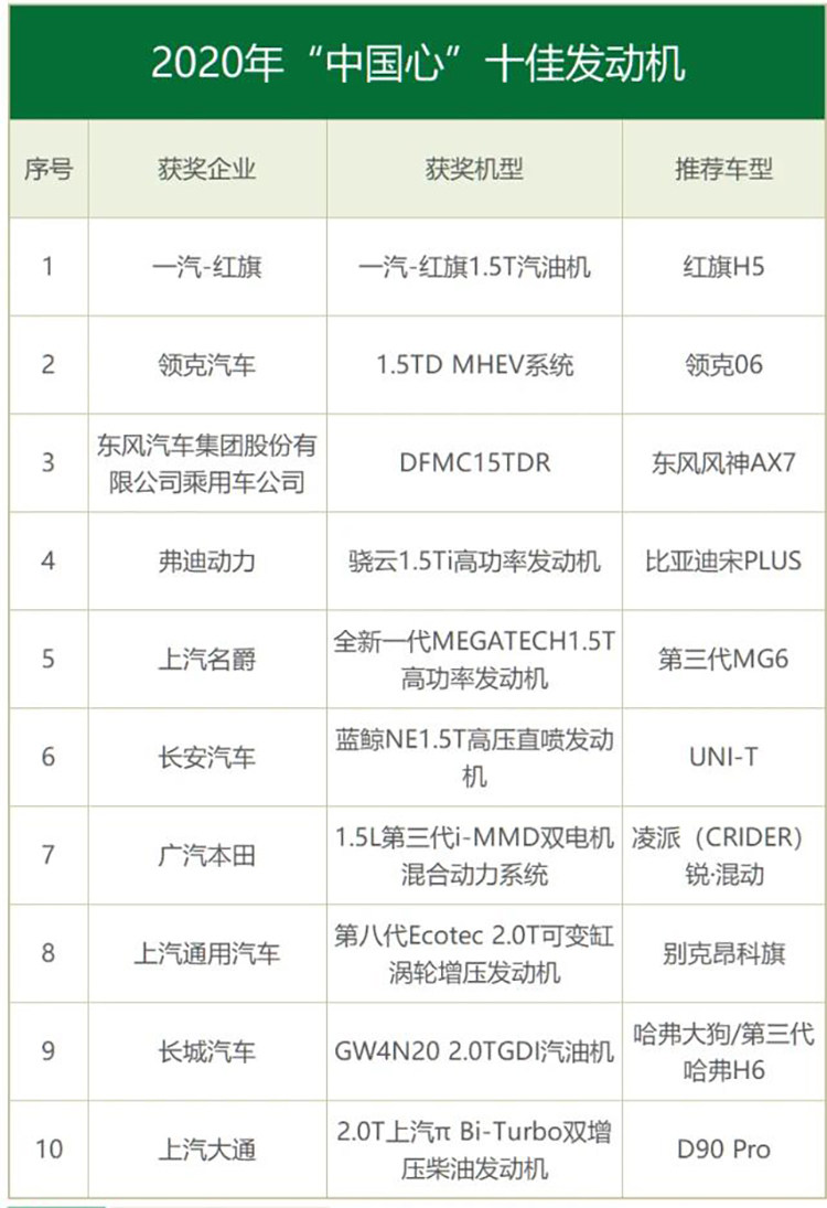 日前,国内“中国心”年度十佳发动机评选活动正式公布了2020年度“中国心”年度十佳发动机名单。