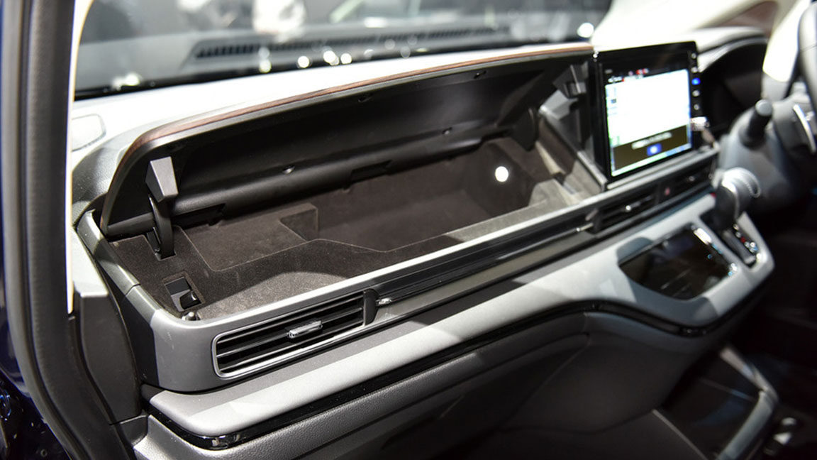 虽然本田常被称为空间王,但似乎日本的用户对它有更高的要求,就像在奥德赛身上不少车主认为前排储物空间仍然不够,所以新款也对这方面进行了提升。第一处升级是手套箱上方的位置,从原来的面板改为可开启储物格。