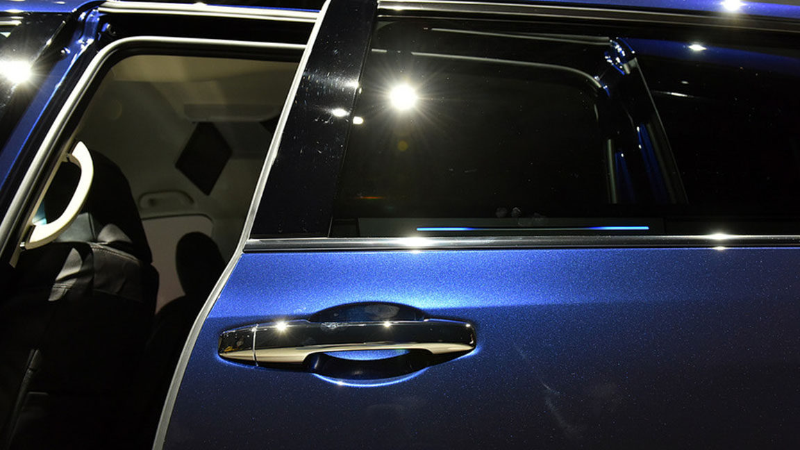 具体来说,在侧门车窗下部会一条蓝色灯带,触发的前提条件是手持钥匙或钥匙在附近,同时手与门的距离在1.5厘米以内。此时手向后移动侧门就会开启,而想要侧门在中途某个位置停止,手触碰或者远离车门都可以,这样的好处是既能保证自动开启时碰撞了物体,同时也能让侧门不必完全打开,特备是在下雨天,只需开启能通过的缝隙即可。