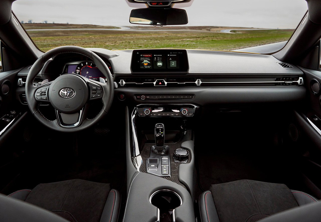 作为一台性能车,丰田Supra前悬长后悬短,在外观上继承了丰田之前发布的FT-1概念车,全新的LED大灯组配合流线型的车身,给人极为动感的运动气息。内饰方面,新一代丰田Supra兼顾性能和科技感,三幅式多功能方向盘和银色换挡拨片,提醒驾驶者这是一台性能车,而悬浮式中控屏,也绝对紧要现在内饰的潮流。