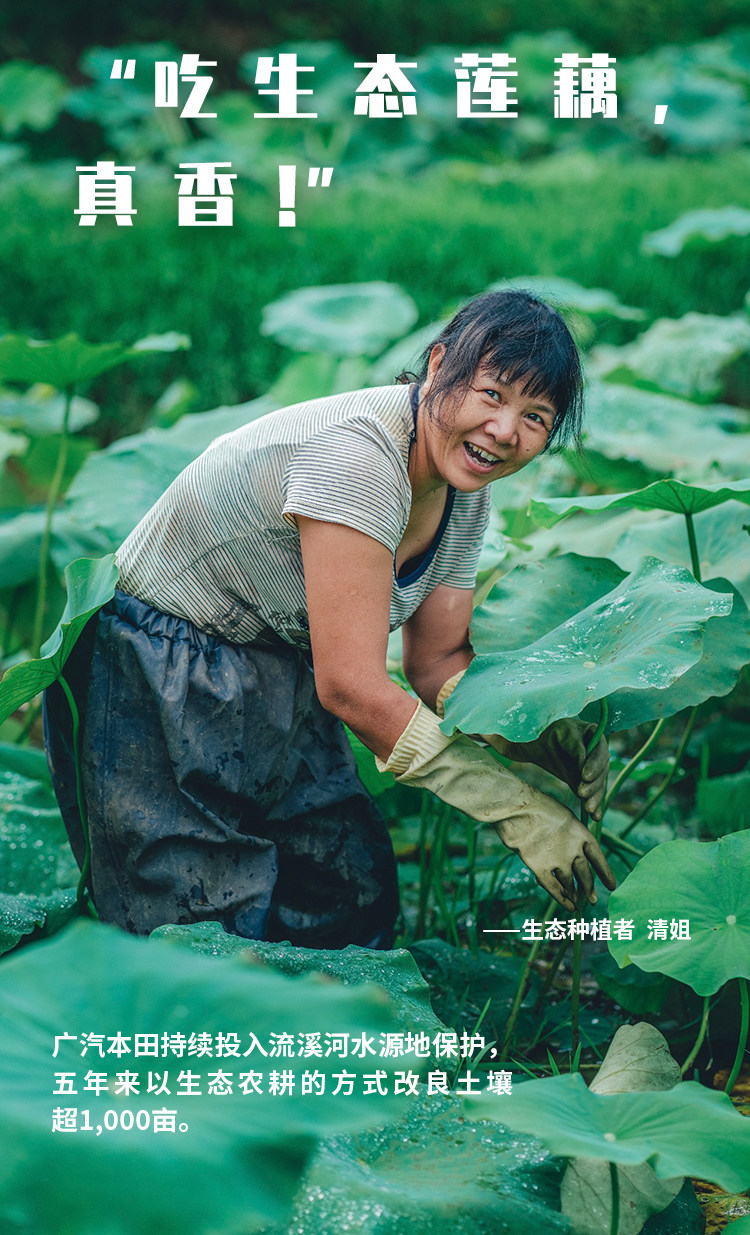 “我是从16年开始创办乐享家庭农场的,坚持不用化学肥料、农药、不用转基因品种等影响生态和健康的东西。虽然一开始产量不多,但坚持下来,你就会发现土壤和水都变好了,种出来的农产品品质更好,也卖价更高。”农户邹顺清的生态莲藕田已经扩建到二十多亩。今天,越来越多的村民像她一样,靠生态农业走上致富道路。