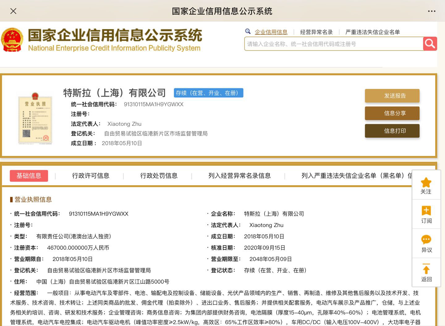 除了在国外被罚以外,其实特斯拉在国内同样也遭遇过罚款。在7月30日,国家企业信用信息公示系统显示,特斯拉汽车(北京)有限公司新增一条行政处罚信息,违法行为类型代号为010101,罚款金额为5万元,作出处罚决定的是北京市朝阳区市场监督管理局。
