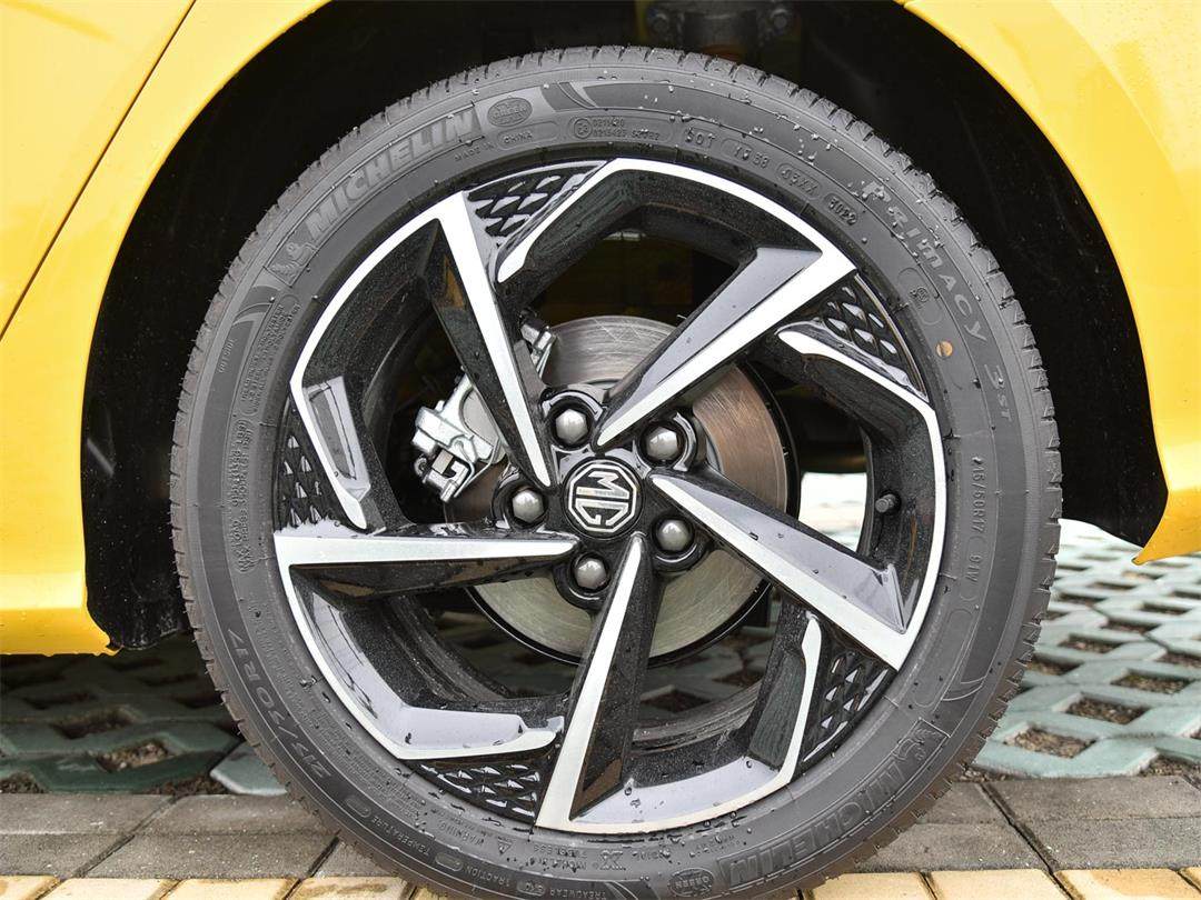 轮胎方面,1.5L车型采用的是16英寸轮毂,而1.5T版本则升级为17英寸轮毂,加上双色轮毂设计也显得惹眼,与之匹配的是米其林浩悦3ST的轮胎,是一款偏静音省油的轮胎。可见名爵5的定位应该是一款颜值吸引年轻人,但在驾驶上依旧趋于日常市区驾驶定位的产品。