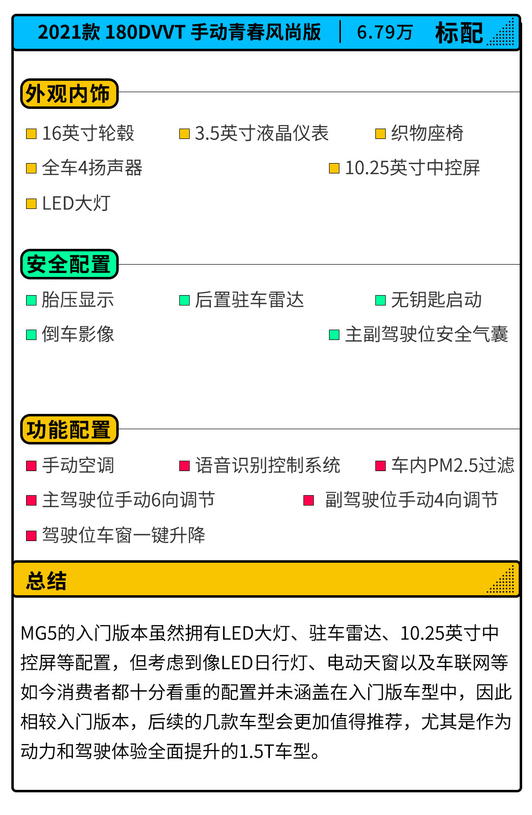 全新MG5的上市,降低了许多年轻消费者的购车门槛,就冲着这样的设计就已经圈粉不少年轻人,关键是作为一款购车门槛不高的车型,非常适合作为刚步入社会的年轻人的第一辆车,加上当下特殊的社会情况,乘坐公共交通出行确实不如以前方便,许多年轻人在现有预算的情况下也急需一辆属于自己的汽车,或许MG5的出现能够成为这类消费者最值得一看的选择。
