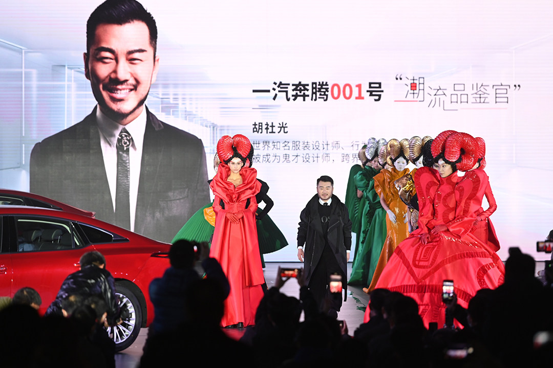 国际知名”鬼才”设计师、全新第三代奔腾B70的001号“潮流品鉴官”胡社光,以“光影哲学之性感曲面”为灵感来源,通过最新服装作品,大秀汽车设计与时尚潮流的美学共振,将现场氛围推向高潮。他表示,全新第三代奔腾B70的“戈”元素大灯、变曲率设计、GT风格掀背等元素,无论韵律或力量,都运用的恰到好处,这是对新潮、性感以及国潮的全新诠释,也给他带来了新的设计灵感。