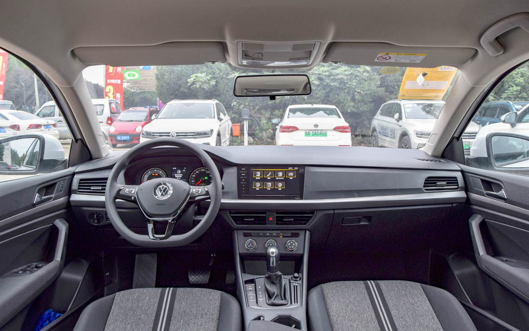 既然外观采用了商务的设计风格,那么内饰自然不会有太大的颠覆。新款朗逸延续了老款的大气舒展的设计,低配车型采用纯黑的配色,而高配车型则可选黑灰和黑粽两种搭配。中控台主要通过几道平直的横向线条进行勾勒,希望扩展视觉上的宽度,这也是德国品牌们目前常用的设计手法。