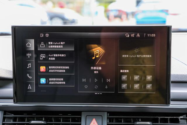 中控屏幕尺寸增加到10.1英寸。屏幕尺寸增加,意味着触控屏幕的操控效果更佳。另外,奥迪全新MMI液晶屏支持触控式操作,从而取消了之前的MMI实体操控面板。多媒体功能支持屏幕触控以及语音交互控制,避免了驾驶员在行车途中盲操作不便的尴尬。