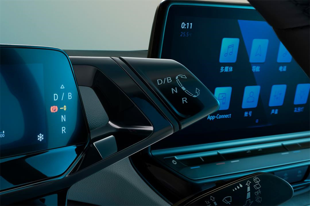 走进ID.4 X 光荷4 X,能够明显感觉到不同于传统汽车的设计与功能布局,即便是在大众家族里,这套内饰设计也算得上是最特别的一款。其中最明显的就是换挡机构设计上,得益于全新的MEB平台,ID.4 X 光荷4 X与传统燃油车的布局设计并不同,电子档把设计在了仪表盘的侧面,通过旋钮方式换挡;用最简洁明了的方式展现车辆的行进方向,操作简单且不失乐趣。