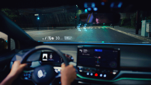 光线能够传达的信息远超过语音百倍,在ID.4 X 光荷4 X的车厢内部就很好的运用了管线的这一特性,车道保持、ACC自适应巡航等信息被集成在了前方的AR-HUD抬头显示功能上。现实路况、导航以及车速信息都投影在挡风玻璃上,电影中的科幻座舱也莫过于此;并且路况与导航信息的重叠显示也能够更加精确地标注出高速路出口等信息,大大减少走错路的情况发生,同时顾及到了科技感与实用性。
