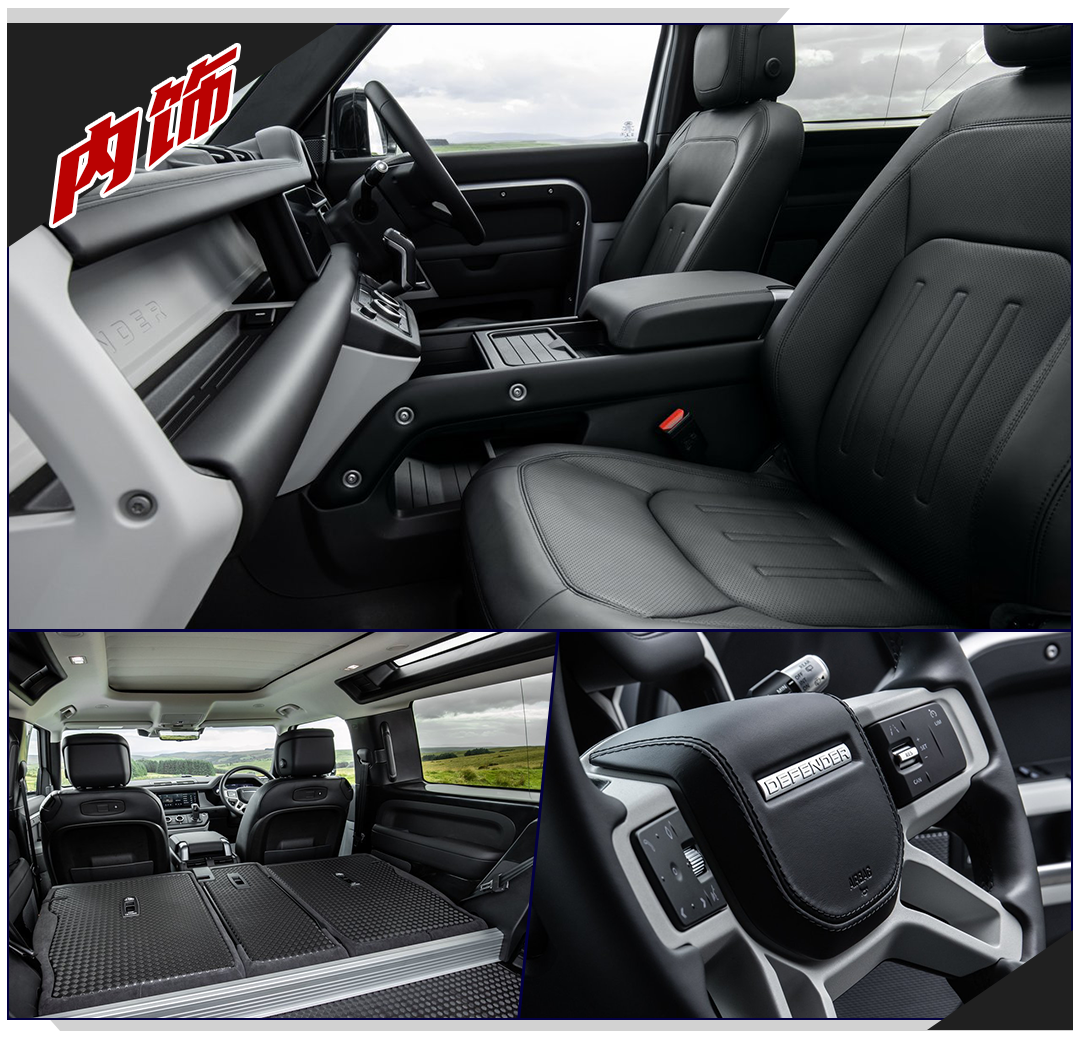 不同以往,卫士90内饰采用工业风格设计,与此同时仪表和中控的双液晶强调座舱科技化的定位。卫士90座舱相比于老款车型更加注重实用性的考量,车内装饰件采用镁合金涂层面板,美观的同时具有耐用性。地板采用耐磨橡胶地台,可直接冲水清洗。不论是座舱涉水后的清洗还是尖锐物品的置放,橡胶地台都能从容应对。