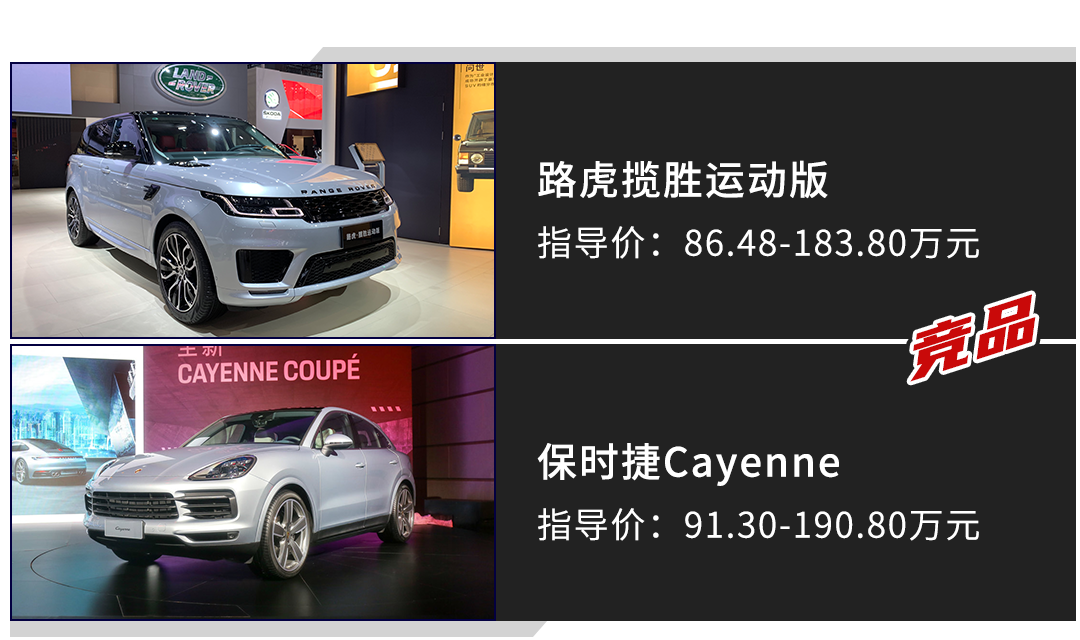 从售价区间来看,路虎揽胜运动版的直接竞争对手为保时捷Cayenne,两款车型在售价区间有很大的重叠度。近年来保时捷凭借着出色的操控性能和豪华驾乘打开品牌知名度,而在量产车型当中保时捷Cayenne也是品牌旗下主流车型。路虎揽胜运动版这么些年来一直是弥补老大哥揽胜售价太贵的短板,让那些喜欢揽胜而又预算紧凑的消费者有了第二个选择。