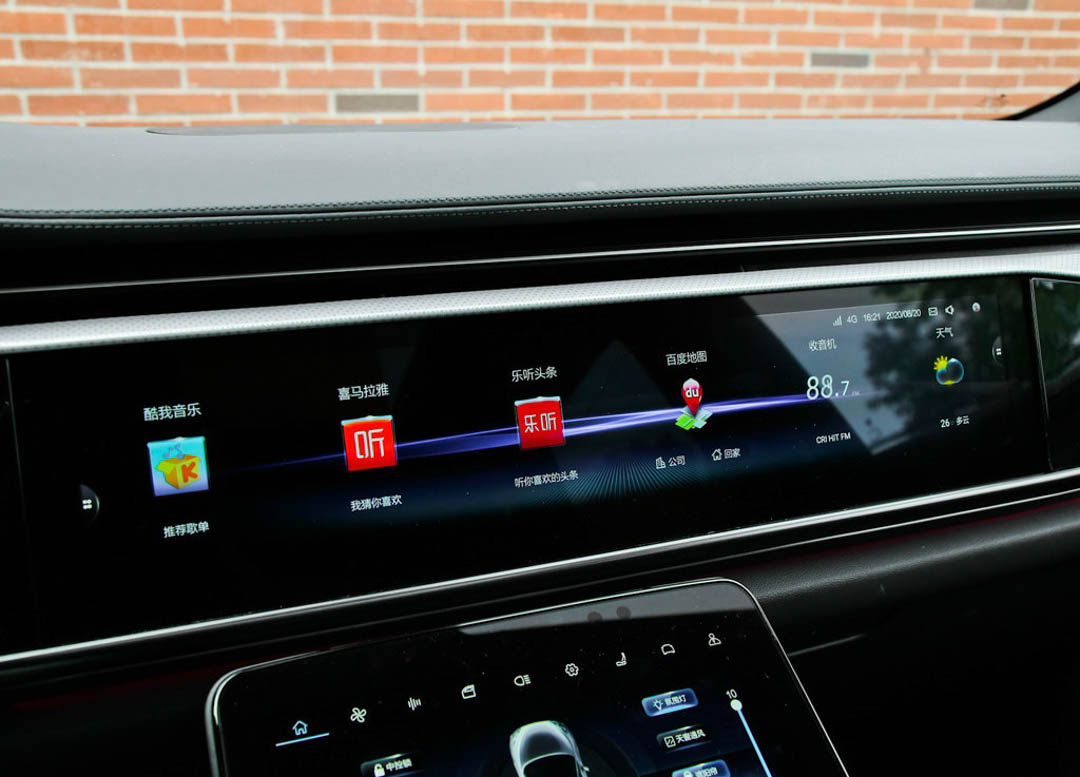 其中这块20.3英寸的中控屏无疑是绝对的主角,该系统内置了车联网功能,可以支持在线导航、在线多媒体、手机互联、远程控制等功能,不过这套系统的界面设计和配色让人想到了十年前的智能机,整体画风比较老气。