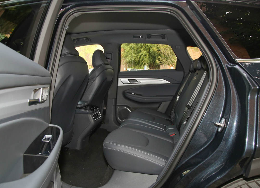 虽然2915mm的轴距带来了不错的腿部空间,但是后排座椅并不支持任何角度调节,而且也没有独立空调,有点浪费了这个尺寸的感觉。由于塞下了大量的电池,导致整体地台较高,所以后备箱容积仅有462L,乘客坐姿也较高。
