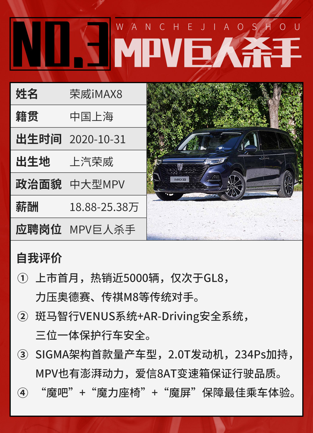 而荣威iMAX8的出现,似乎打破了这种僵局,荣威iMAX8上市首月便热销近5000辆,成为10月销量第二的高端MPV,这样的表现已经明显高于预期。荣威iMAX8的出现,意味着自主品牌正在向该部分市场发力,试图突破被合资品牌长期垄断,打造高性价比、高品质的MPV车型。