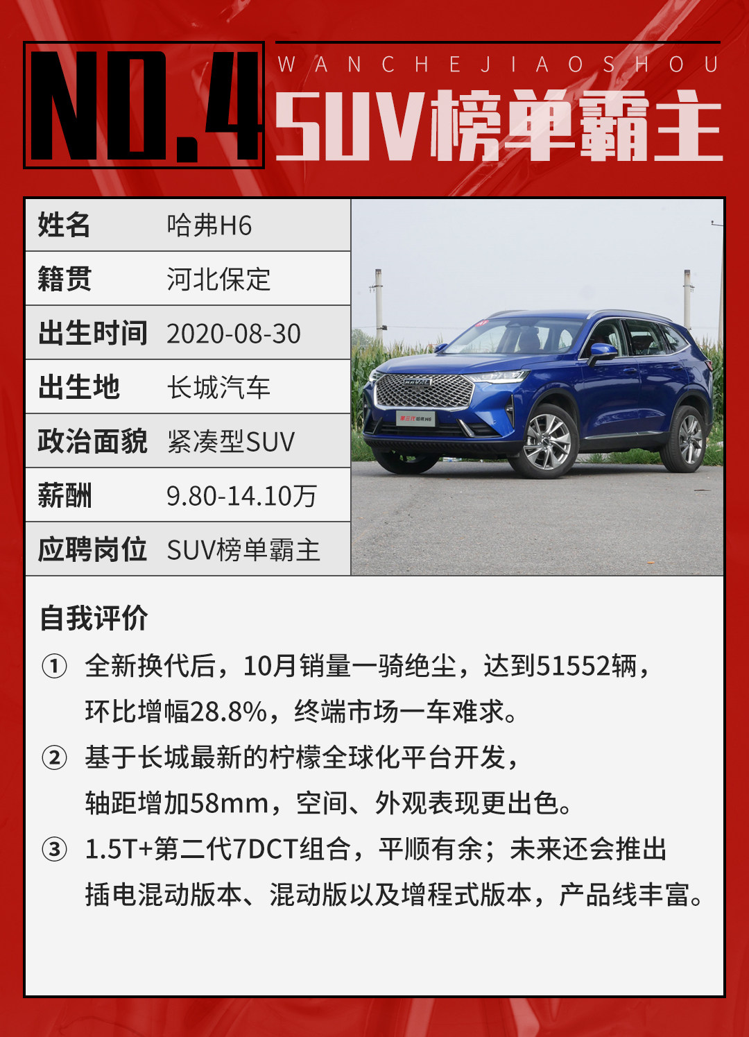 不得不说,哈弗H6是一辆符合了很多国人对于汽车的基本需求,不错的外观设计、智能化的车机、高端的液晶仪表盘、优秀的空间、不错的动力表现,虽然在油耗方面相比起合资车型会相对弱一些,但同级别的合资车型基本上是哈弗H6价格的2倍,这也正是哈弗H6的杀手锏——性价比。哈弗H6无疑是中国品牌的奇迹,而这个奇迹正在继续创造属于它的未来。