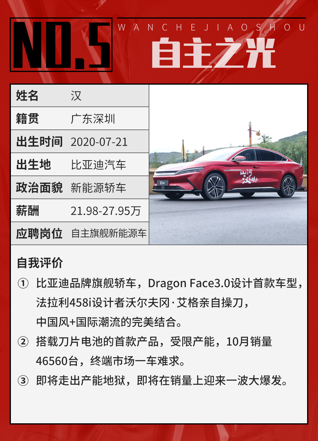 得益于刀片电池的搭载,605km的续航成绩以及旗舰级的定位,让比亚迪汉自上市以来就热度不减,这里可能有人问:为什么月销几千辆也算是爆款?其实,目前比亚迪汉的实际交付量并没有追上销量的节奏,主要原因是刀片电池的产能未能满足需求,使得目前比亚迪汉在终端市场一车难求。